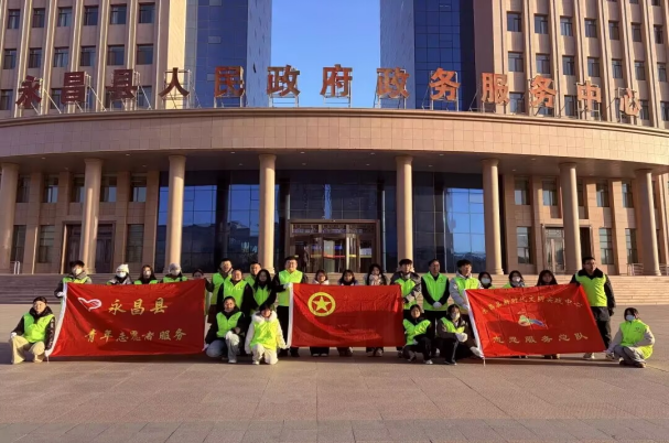 严昊和其他志愿者在政府服务中心前的合影