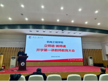 2023年3月5日,机电工程学院在逸夫科技馆二楼报告厅开展“立师德 铸师魂”开学第一讲教师教育活动,全院教职工参加会议。