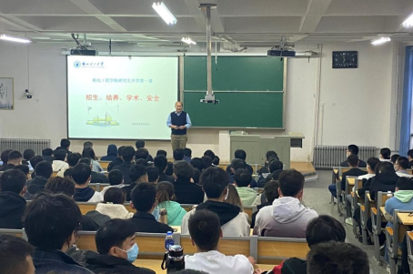为进一步加强研究生思政教育、学术教育和安全教育,引导新生树立明确的学习目标,快速适应研究生阶段的学习生活。机电学院于3月5日晚在彭家坪校区集贤楼208教室举行了“开学第一课”活动。学院副院长靳伍银,研究生辅导员王元华、梁雪洁以及全体2022级研究生参加。