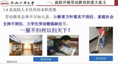 本次专题会有效强化了马克思主义劳动观,要求老师注重围绕创新创业、结合学科专业特色开展劳动教育,正确处理理论学习和实践锻炼、劳动教育和其他教育、劳动的传统形态和新形态之间的关系,建立“劳动知识+劳动技能+劳动品格”的劳育效果评价体系,既要有效促进劳动教育的实施,又要防止有劳动无教育的形式主义或劳动教育按其他学科考试方式搞技能测验的误区。
