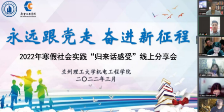 为引领教育广大青年学生在社会实践中受教育、长才干、做贡献,进一步促进我院学生全面成长成才,喜迎党的二十大胜利召开。3月21日,机电学院团委线上开展了以“喜迎二十大、永远跟党走、奋进新征程”为主题的寒假返家乡社会实践成果汇报分享会,会议由6名优秀实践项目代表及1名返乡实践岗位优秀大学生为同学们分享实践经历及心得,共计200余名学生参与。