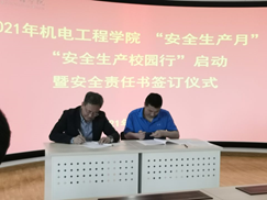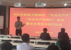 首先,王正民书记要求大家以“消除事故隐患,筑牢安全防线”为主题,以加强疫情防控常态化条件下涉校涉生安全管理和安全风险隐患排查整治为重点,扎实推进问题整改,坚决遏制涉校涉生重特大事故发生,并宣布机电工程学院2021年“安全生产月”活动启动。然后,安宗文院长代表学院和本学期新晋的五个科研实验室负责人签署了相关实验室安全责任书。