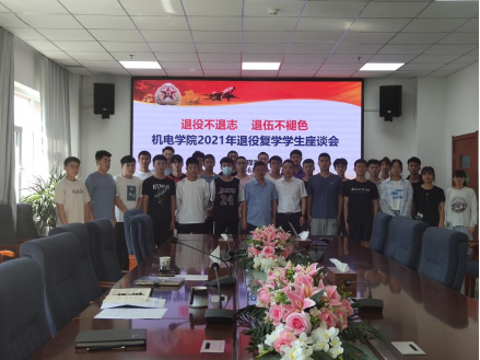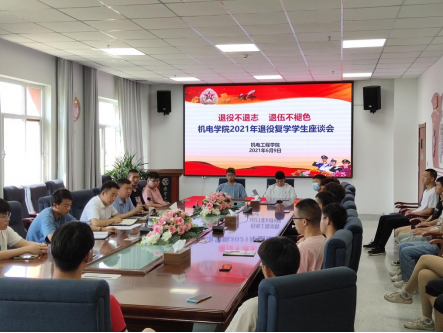 6月9日,机电学院在机电大楼518会议室举行“退役不退志,退伍不褪色”为主题的退役复学学生座谈会。会议由学工办冯玉玺老师主持,学生处唐洪川老师、退役复学学生、参军入伍学生、有志向入伍学生及20级各班班长参加会议。