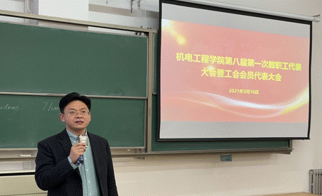 2021年3月16日下午,机电工程学院在学院会议室召开了第八届第一次教代会暨工会会员代表大会,学院领导及全院教职工参加了大会,会议由学院党委书记王正民主持。