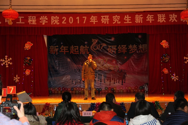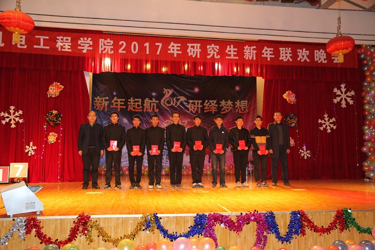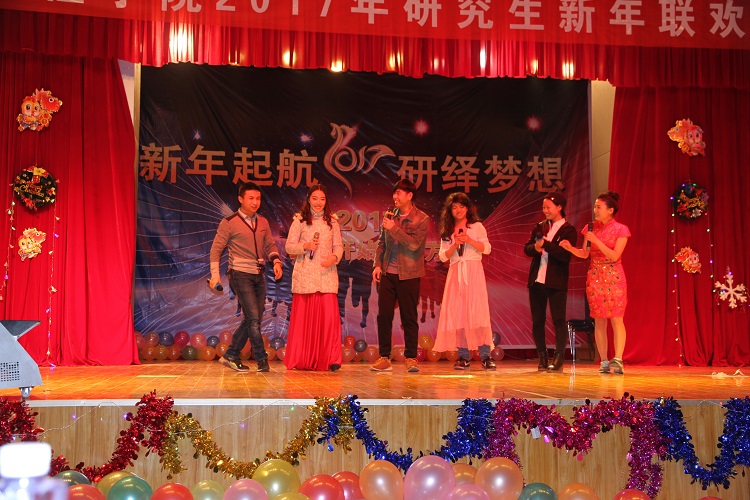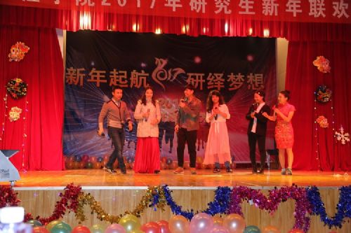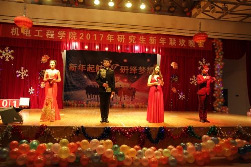2016年12月24日晚19:00,机电工程学院”新年起航,研绎梦想”—2017年研究生新年联欢晚会在校本部大学生活动中心成功举行。此次晚会经过全体研究生的的精心策划和筹备,得到了学院领导老师的高度重视和大力支持。出席晚会的嘉宾有研究生院马建平副院长,机电工程学院张君书记、靳伍银副院长、邬再新副院长、刘永平副院长、赵家黎副院长,王元华老师,傅应霞老师,我院全体硕士研究生同学参加了此次晚会。