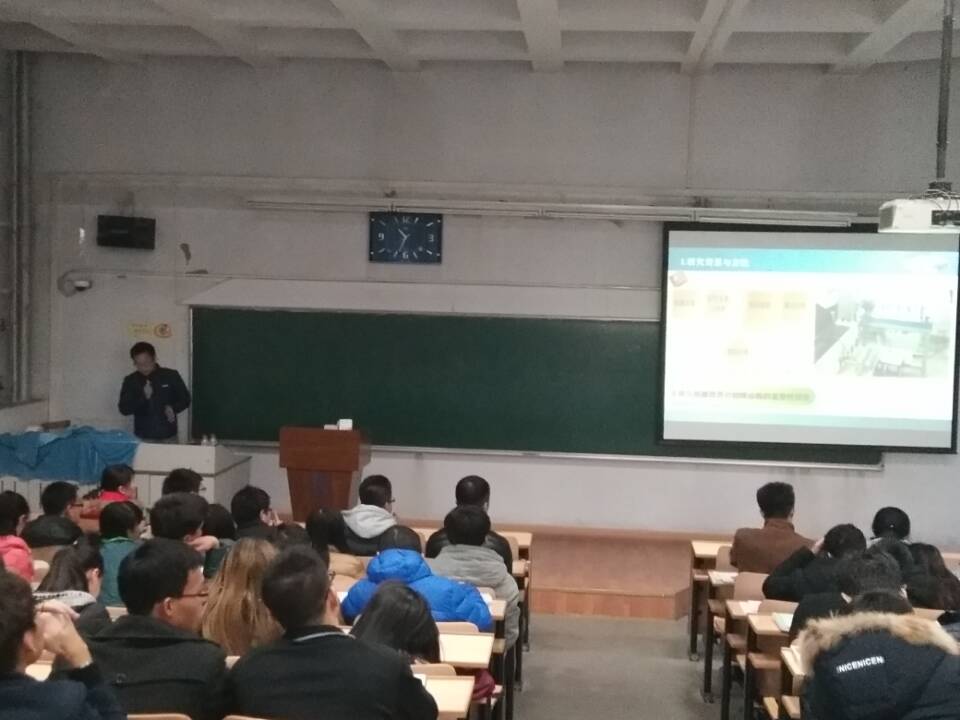 会议之前,王元华老师对三位主讲人做了简单的介绍,随后本次论坛在同学们的掌声中拉开了帷幕。首先,寇海霞同学讲述了以“创新节能之举是健康生活之源”为主题的报告,针对风电叶片的疲劳试验方法向同学们详细介绍了自己的科研内容和成果,与同学们分享了自己的学习心得,她告诫同学们“在学习的时间内干与学习无关的事,总会有一天,在干与学习无关事的时候,后悔曾经没有好好学习”。
