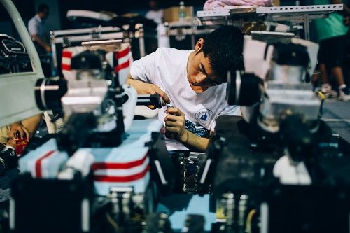 红柳猎人战队队员在组装机器人