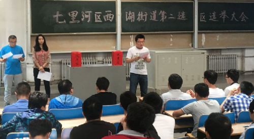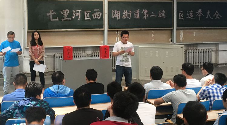 2016年6月3日七里河区西湖街道第二选区选举大会在兰州理工大学一号南楼501召开,学院全体同学在会场进行了投票。机电工程学院12级辅导员李月同志担任此次选举的总负责人,机电工程学院12级就业指导员赵继国同志担任此次选举的负责人,机电学生党支部副书记李尧德同志担任此次选举的总监票人,机电学生党支部组织委员牛天明同志担任此次选举的总计票人。