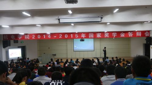 10月8日晚,机电学院在西校区2号楼108隆重举行了2014—2015学年国家奖学金答辩会。学院党委武军莉副书记、各年级辅导员以及学生代表14人担任评委,2015级全体学生和两委会学生干部550余人参加了本次答辩会。