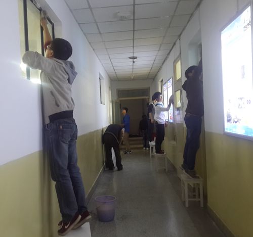 下午三时,志愿者们在学院办公楼、专业认证办公室和资料室美化学院办公室卫生、清洗学院宣传板、整理学院资料室,同学们热情高涨、干劲十足,通过大家齐心协力默契的配合,很快创造了优美的工作环境。