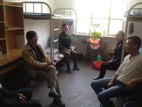 院领导和老师先后走访了我院研一,研二和研三学生所在宿舍楼。首先检查了女生寝室,寝内物品摆放较为整齐,地面干净整洁,装扮温馨舒适,良好的卫生状况得到一致赞赏。走访男生寝室时,王娟老师及时提醒了个别寝室存在脏乱问题。每到一处,领导都仔细查看寝室门窗和整体卫生情况、配电设施的规范管理,甚至小到阳台的物品工具摆放都成了老师们关注的焦点。