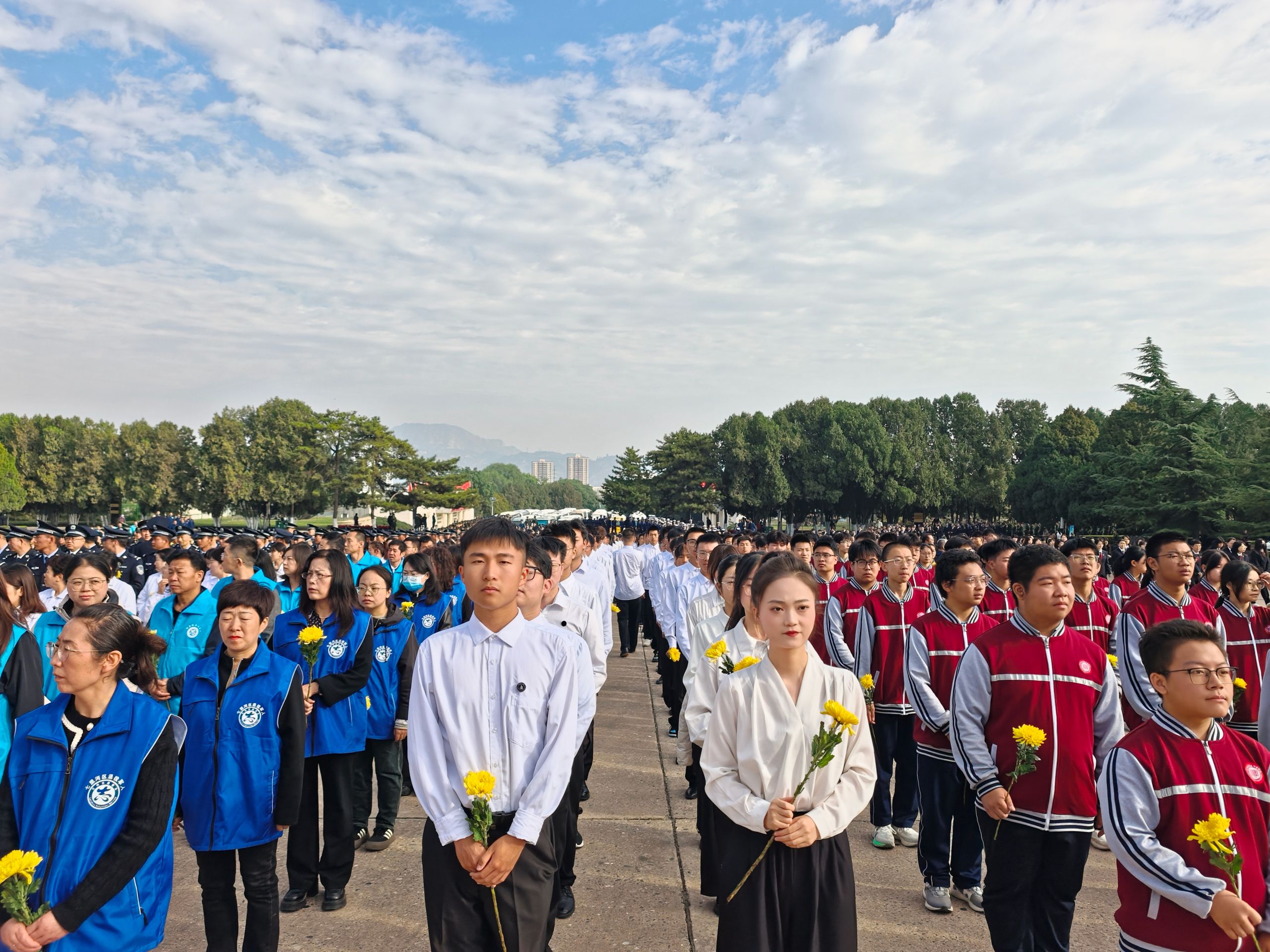 活动在庄严的国歌声中拉开了帷幕。全体师生面向人民英雄纪念碑肃立默哀,向革命先烈致以深切哀思与崇高敬意。默哀毕,师生们依次缓步上前,瞻仰烈士纪念碑并敬献鲜花,缅怀那些在历史长河中熠熠生辉的名字,寄托无尽哀思。