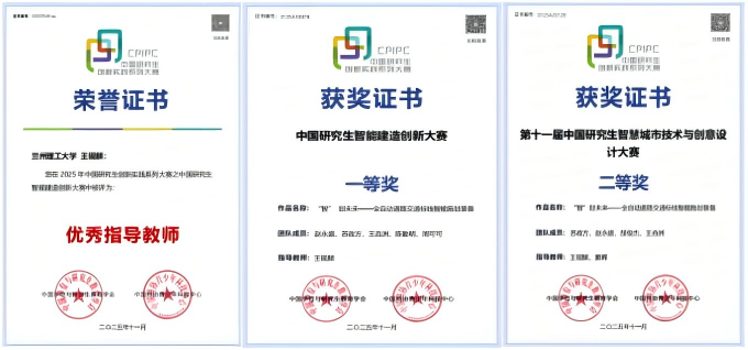 2025年11月,兰州理工大学机电工程学院王砚麟团队凭借“道路交通标线智能施划装备”,斩获首届中国研究生智能建造创新大赛全国一等奖、第十一届中国研究生智慧城市技术与创意设计大赛全国二等奖,指导教师王砚麟获评“优秀指导教师”,彰显该校科研育人成效。