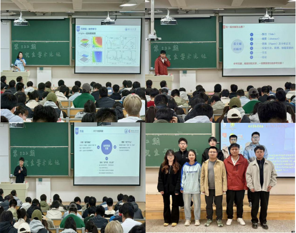 论坛邀请了三位在科研实践中表现突出的研究生进行专题分享。于璞垚系统梳理了研究生阶段的整体规划,分享了高效的文献管理(如Zotero)与“三步走”阅读方法,并针对科研中常见的心态波动问题给出了务实建议。李建雄聚焦《如何迈出科研第一步》,围绕文献检索、工具使用(EndNote、知网研学等)、英文写作润色(Grammarly)以及论文投稿选刊(Letpub)等全流程,推荐了大量实用工具与资源网站。张晓博则从“认知破局”入手,辨析了无效努力与有效努力的区别,强调了根据个人发展目标(读博或就业)规划科研路径的重要性,并分享了批判性文献阅读法与“长期主义”的科研习惯培养心得。三位同学的分享内容翔实、贴近实际,涵盖了从思想认知到工具实操的多个层面,为在场同学提供了全方位的科研入门指导。