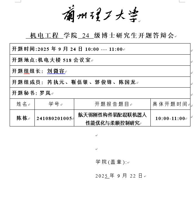 2025年秋季学期博士研究生开题答辩安排(陈栋)