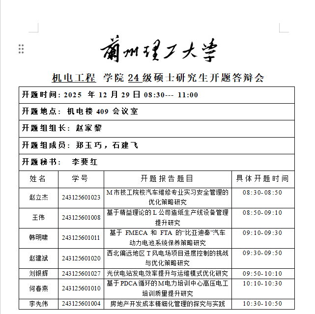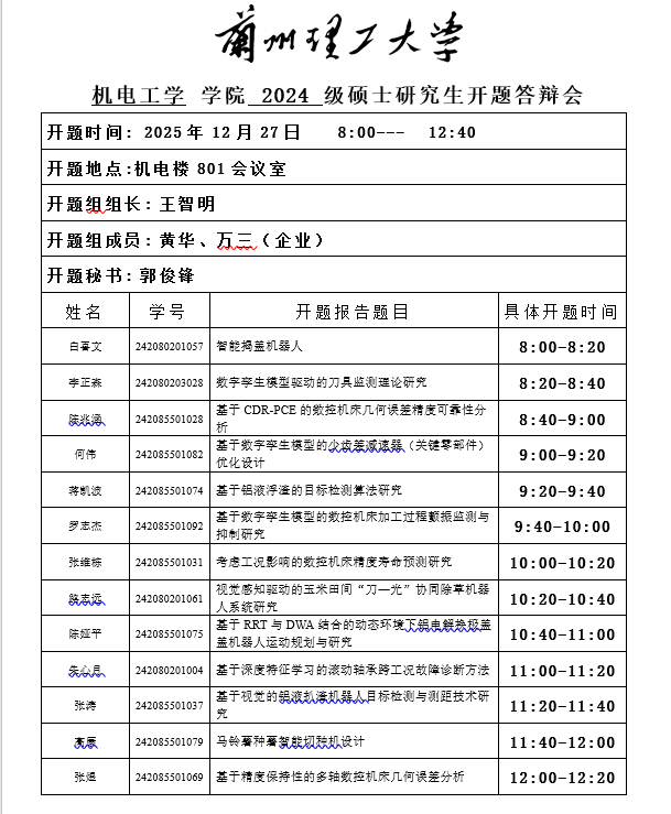 下一篇:深化产教融合,共育卓越人才——机电工程学院组织2025级研究生赴甘肃省计量研究生院开展参观活动